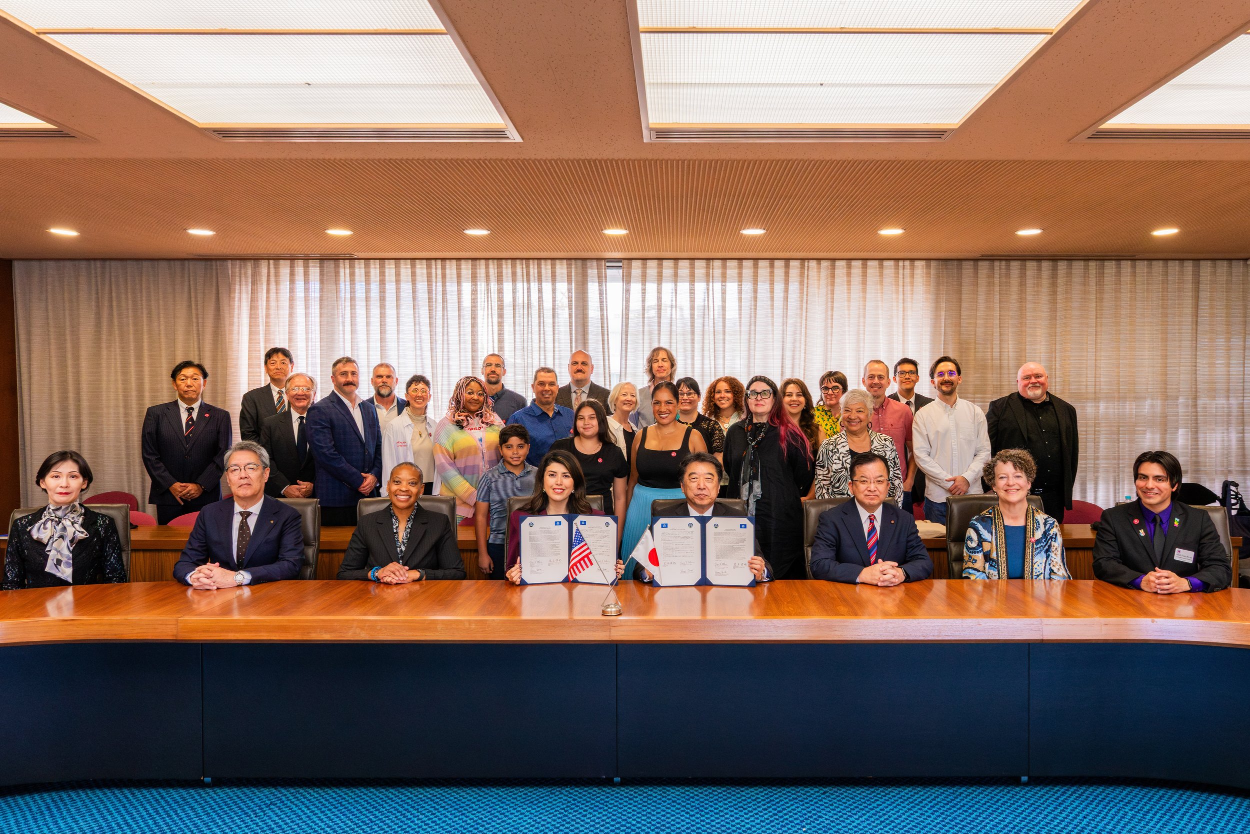A signing ceremony between Mayor Pro-Tem Fuentes and Oita City Mayor Adachi acknowledging the 35th anniversary of the Sister City relationship